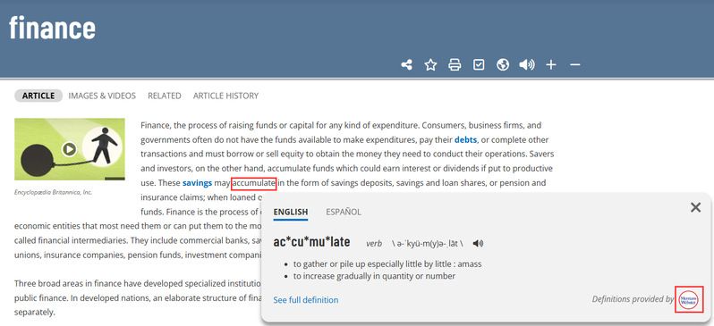 朗读:可激活文本语音工具,提供文章的英文原文朗读。选中单词并双击,即可激活韦氏大词典,提供释义和发音。