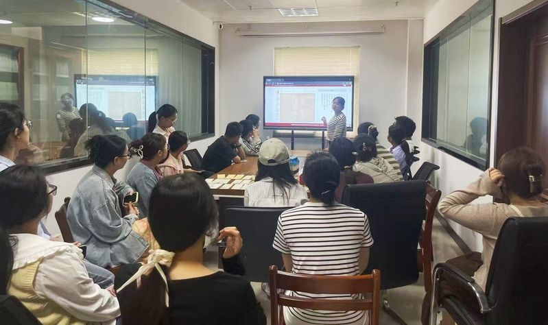 樊老师展示了图书馆古籍特藏文献数字化建设成果,现场演示了“古籍特藏文献数字化平台”的使用方法。新生们通过电脑操作,轻松检索到所需古籍和特藏文献目录、繁简转换原文及相关研究资料,直观感受“数字赋能”让古籍“活”起来的魅力。
