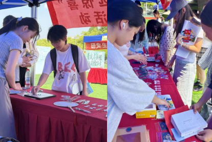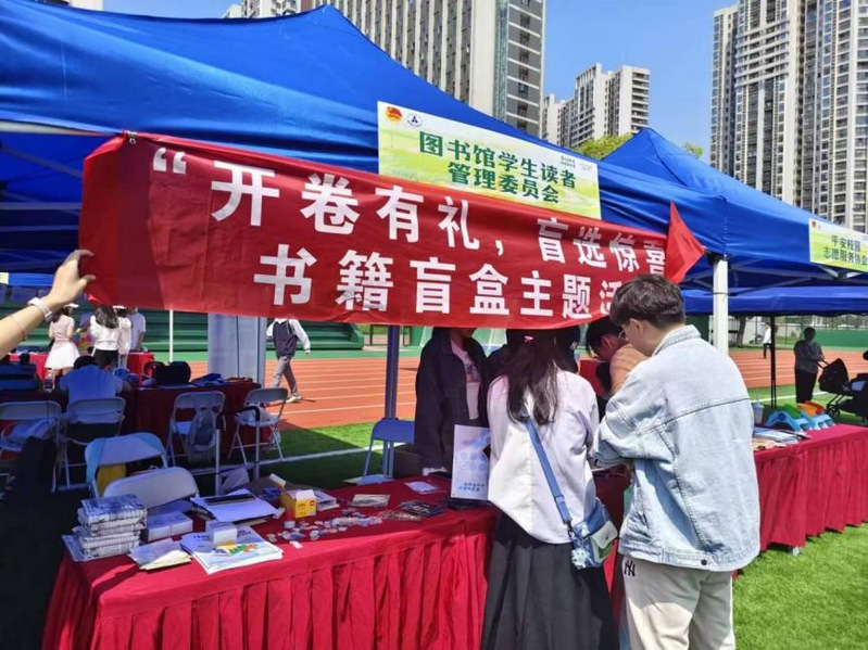 (学生通讯员 尤诗怡)为进一步丰富校园文化生活,营造爱读书、读好书、善读书的浓厚氛围,4月19日,图书馆学生读者管理委员会在南湖校区北区田径运动场开展了趣味满满的文化互动活动。本次活动以“书香+趣味”为核心,将文化体验与互动游戏相结合,为同学们打造了轻松愉悦的校园文化场景。