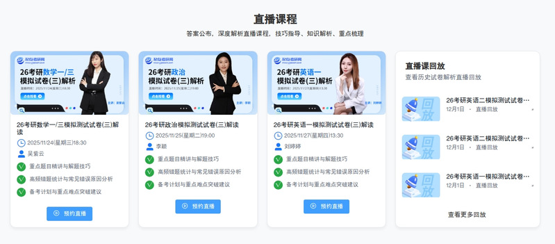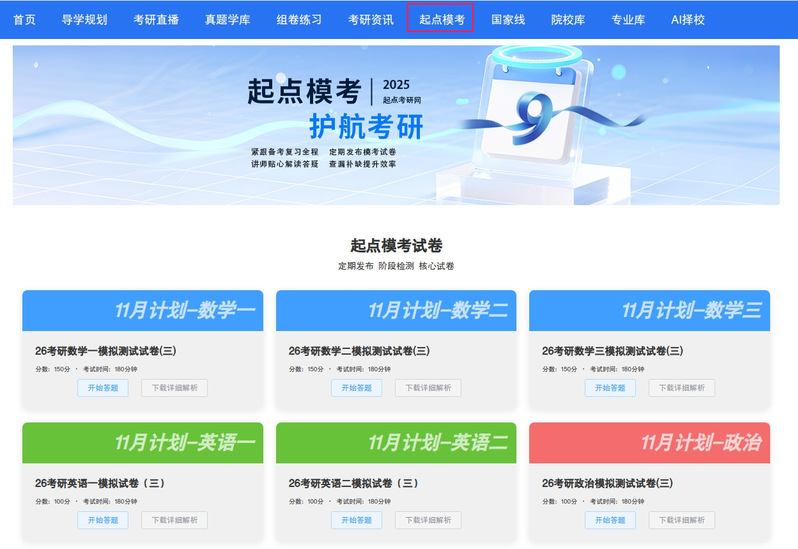 起点模考板块中收录了最新的模考试卷,并提供了详细解析,帮助用户测试学习备考情况。感兴趣的同学们还可以在做完模考试卷后观看直播解析,及时梳理错题、巩固知识点,提高学习效率。