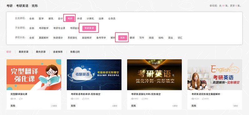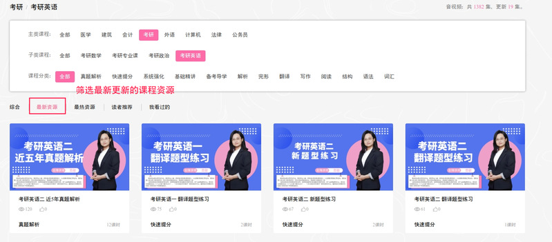 用户还可以根据资源更新时间、推荐人数筛选最新或最热资源,快速定位所需课程视频。