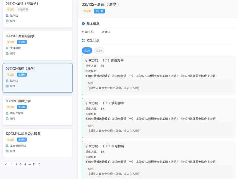 进入院校详情界面后可以看到该校的招生专业以及各专业的详细招生计划。