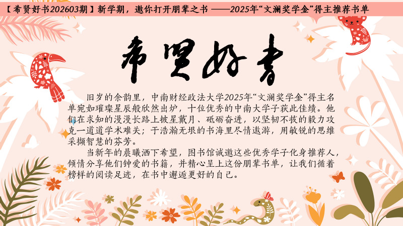 【希贤好书202603期】新学期,邀你打开朋辈之书 ——2025年“文澜奖学金”得主推荐书单