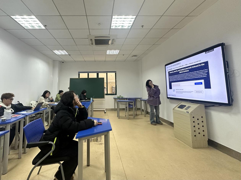 (通讯员 屠晓梅)2026年3月9日,应外国语学院李晶老师邀请,图书馆信息咨询部向纯仪老师在文澴楼208教室为硕士研究生《AI赋能外语学术论文写作》课堂开展了题为“英文数据库信息检索与应用”的嵌入式教学。