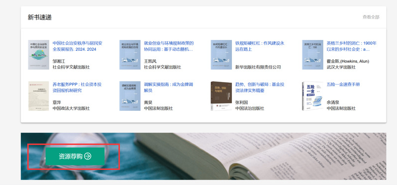 三、登录后,将页面拉至最下方,点击“资源荐购”按钮;