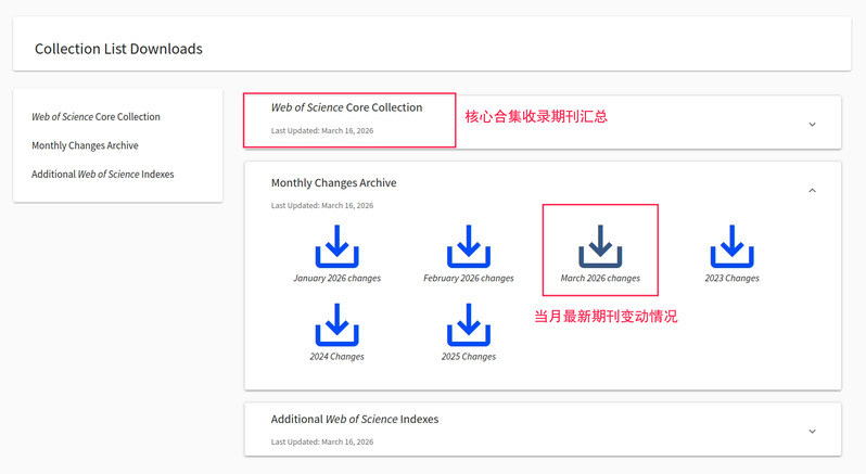 科睿唯安于2026年3月16日完成最新一期Web of Science(WoS)核心合集期刊目录更新,本次调整涉及期刊剔除、更名、新增收录等多项变动。为帮助我校科研人员精准把握期刊状态、规避投稿风险、合理规划投稿策略,本期学科服务动态对本次WoS核心合集期刊目录更新要点进行梳理,为投稿选刊提供及时的参考依据。