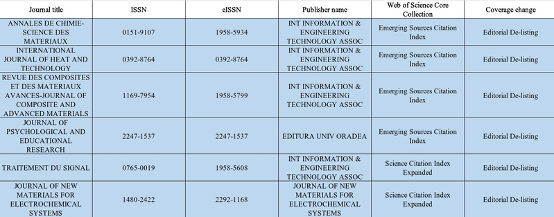 共有6本期刊被剔除,其中ESCI收录期刊4本、SCIE收录期刊2本。