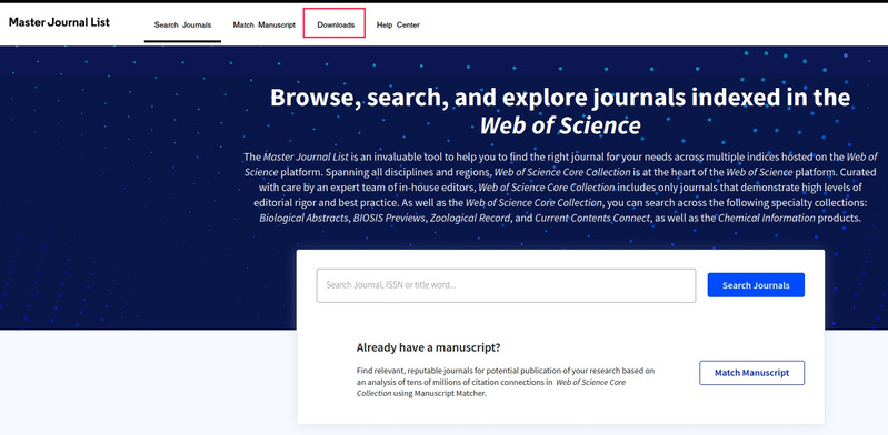 3. 注册并登录个人账号后,点击上方导航栏中“Download”,即可查阅并下载当月WoS核心合集期刊目录及期刊变动的最新情况。