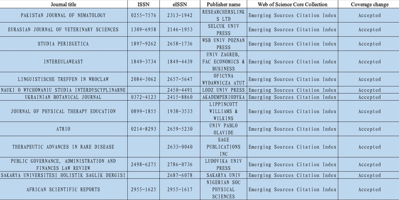 新增收录26本期刊,均收录至ESCI数据库。