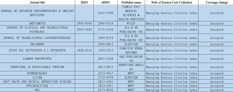 2. 新增收录(期刊通过编辑评估与技术评估,已被加入WoS核心合集)