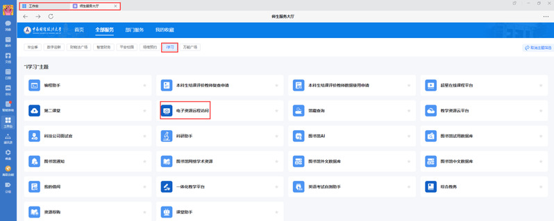 企业微信——工作台——师生服务大厅——i学习——电子资源远程访问/图书馆中文数据库(校园网环境下)——“中文数据库”/“外文数据库”/“试用资源”/“网络学术资源”