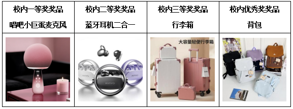 校内奖项设置:一等奖1个、二等奖2个、三等奖3个、优秀奖4个。获奖者将获得由中南财经政法大学图书馆、党委学生工作部、国家语言文字推广基地(中南财经政法大学)、本科生院联合颁发的荣誉证书及奖品。